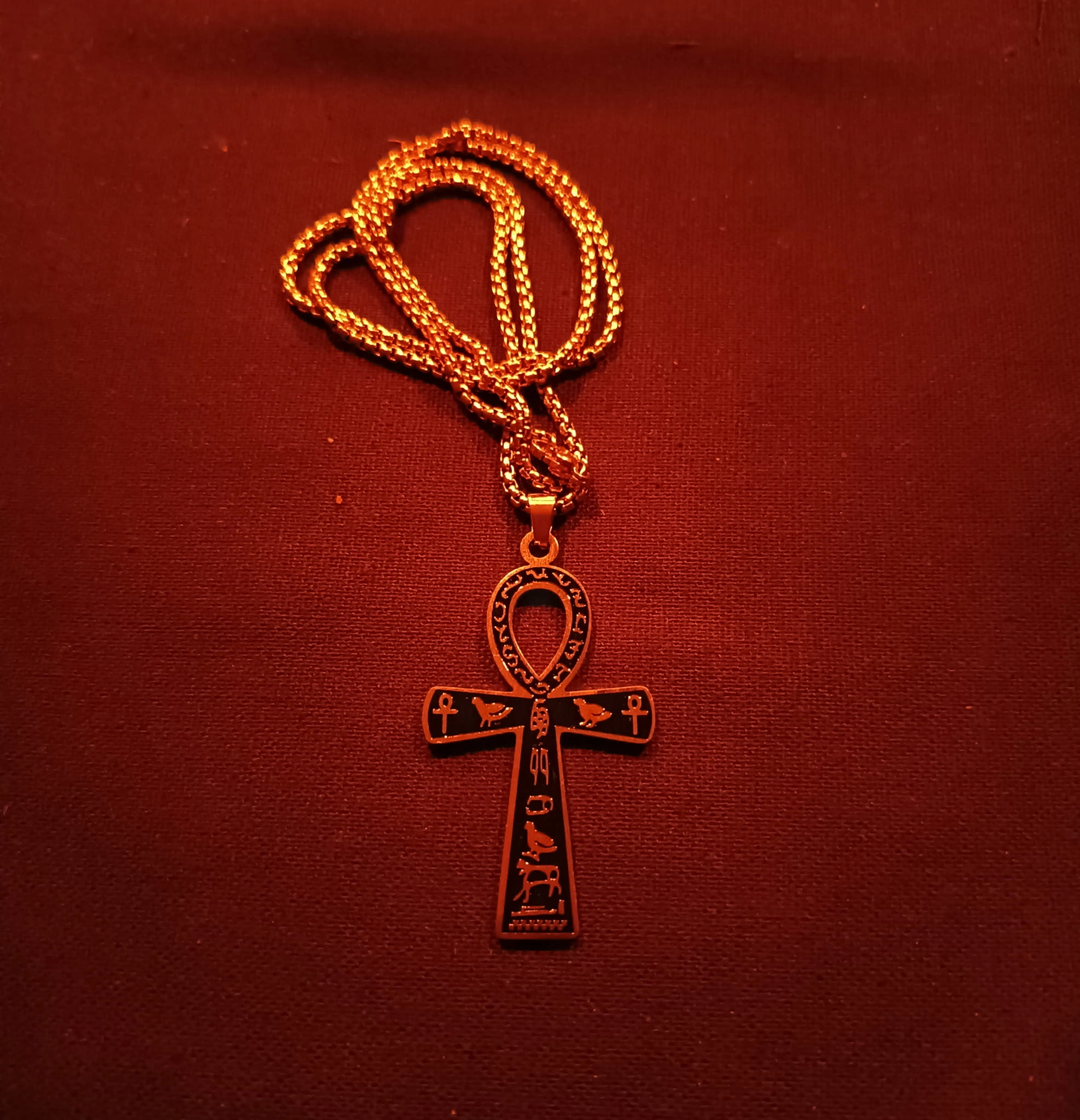 Złota forma podkreśla jego znaczenie jako symbolu siły, świadomości i wewnętrznej mocy. W tradycjach ezoterycznych Ankh był używany jako znak przekazywania życia przez bogów oraz jako narzędzie pracy duchowej i rytualnej.